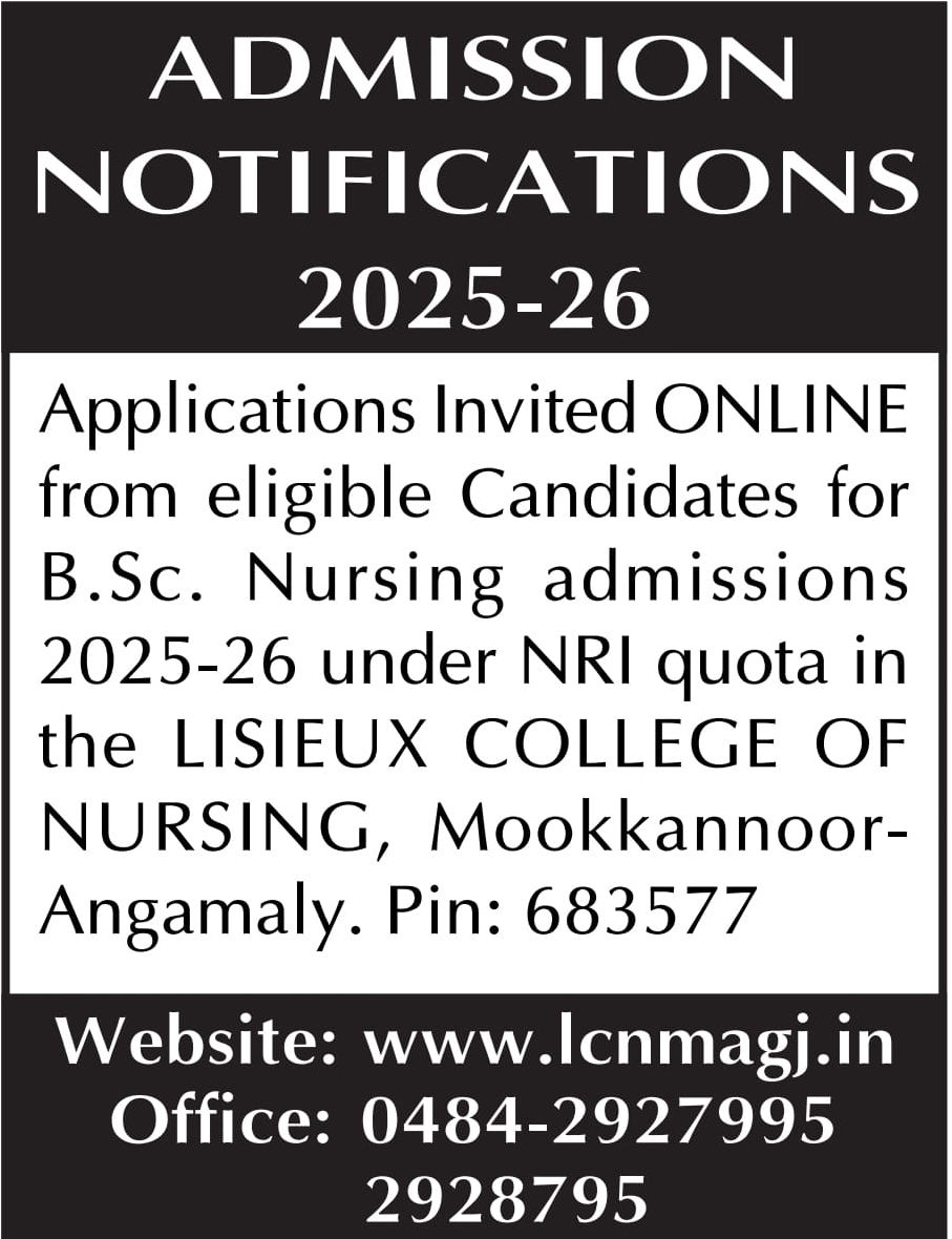 B.Sc. Nursing- 2025-2026 - NRI Quota Admission Notifications